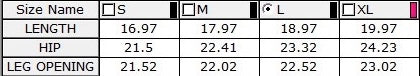 (Size chart is in centimeters)
